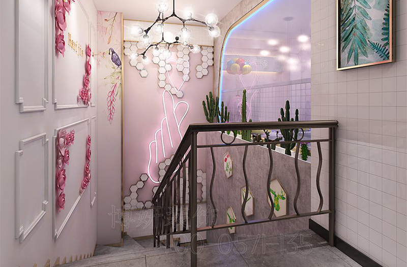 这是店内楼梯处的装修设计,整体具有创意性,旁边带有漂亮的装饰品,将整家店的特色都展现出来。